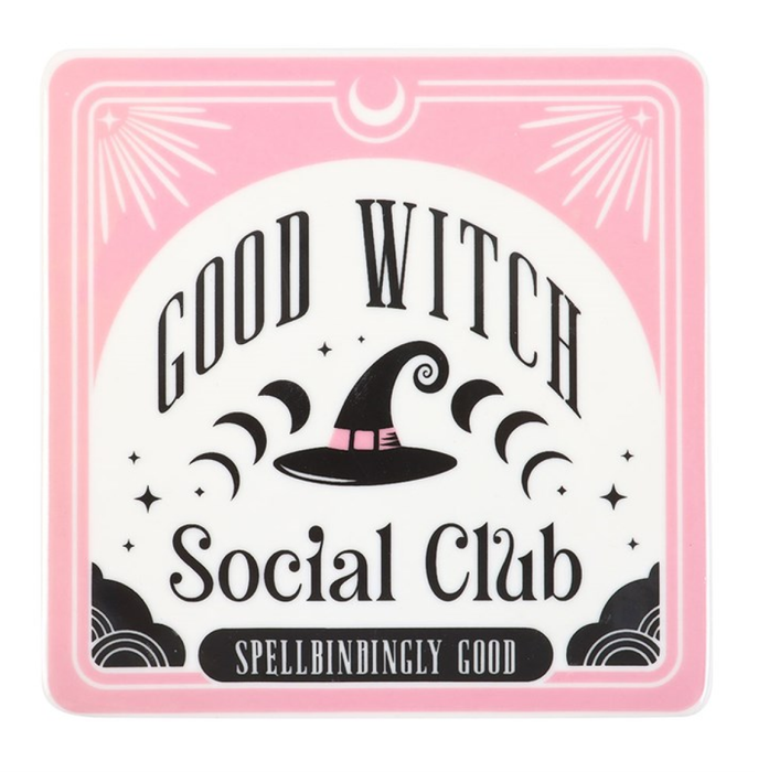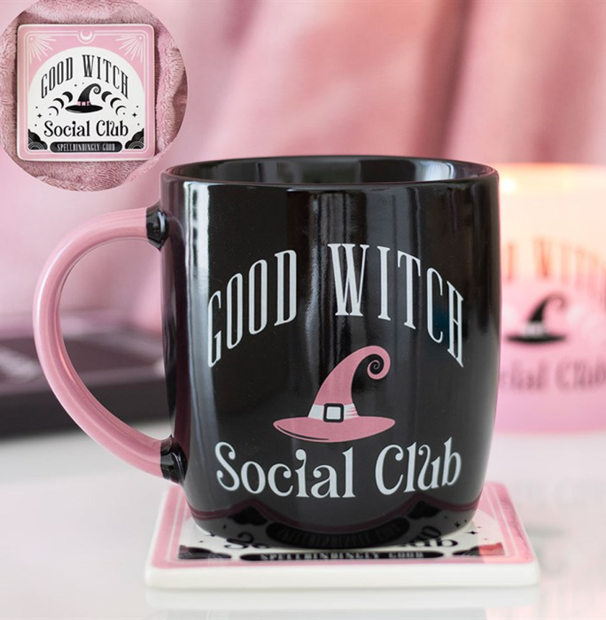 Sip in spellbinding style with this Good Witch Social Club mug and coaster set, perfect for mornings that need a magical boost. Featuring a pastel pink witch hat design and matching coaster, it makes a thoughtful gift for those who proudly practise their good witch ways. 340ml capacity.