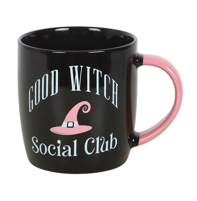 Elevate your sipping experience with the enchanting Good Witch Social Club Mug and Coaster Set. This stylish black mug, adorned with a charming pink handle, is not just a vessel for your favorite beverages; it’s a statement piece that adds a touch of whimsy to your daily routine. Crafted from high-quality ceramic, this mug is designed to keep your drinks warm while providing a comfortable grip, making it perfect for cozy mornings or relaxing evenings.