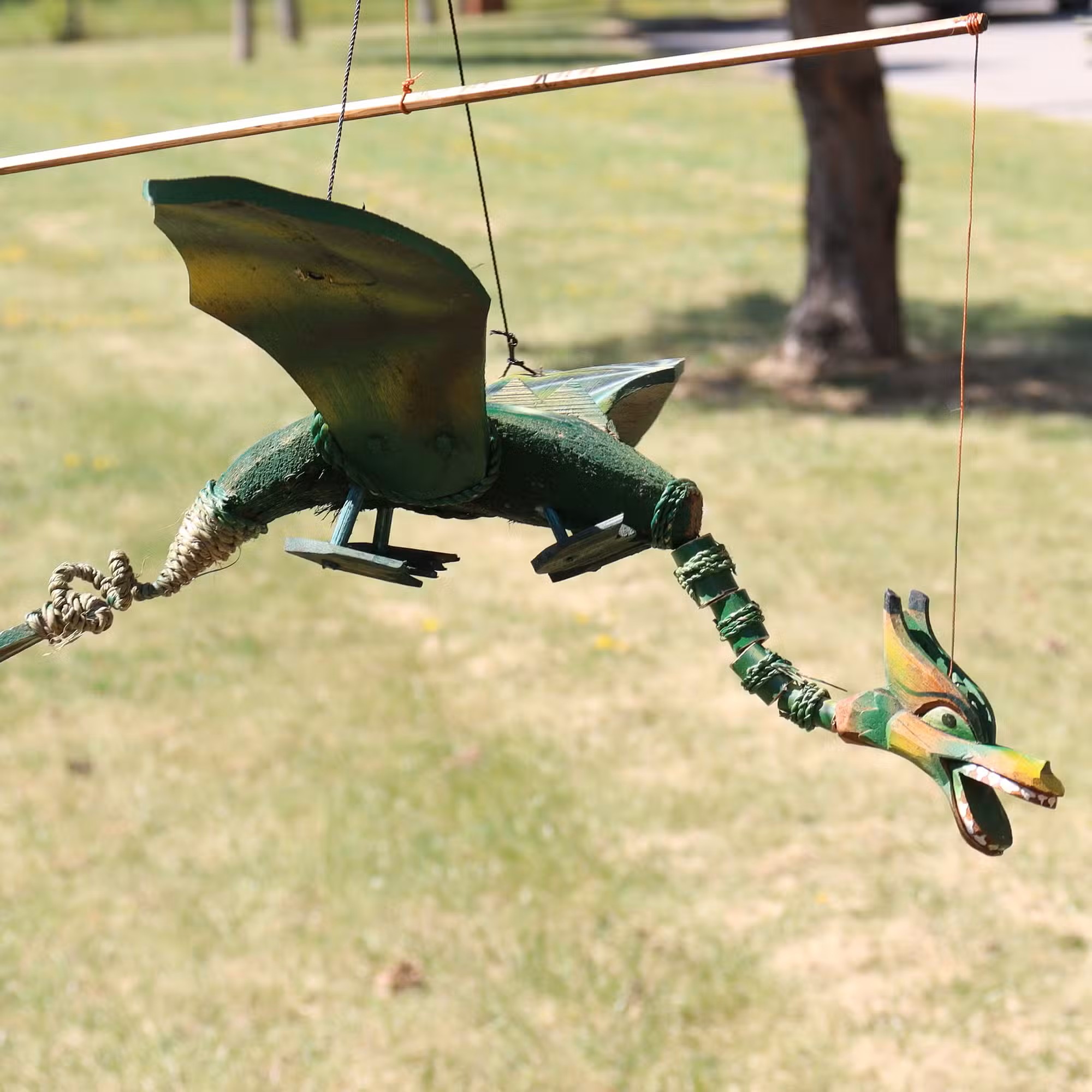 This Coconut Dragon Mobile will make a brilliant display in any home or garden. Can you imagine it dangling in the garden flying around in the wind. These coconut dragons feature wingspan with the length of approximately 37cm x 30cm and hang 40cm down from their hook. Really impressive dragon and no needs to be trained.