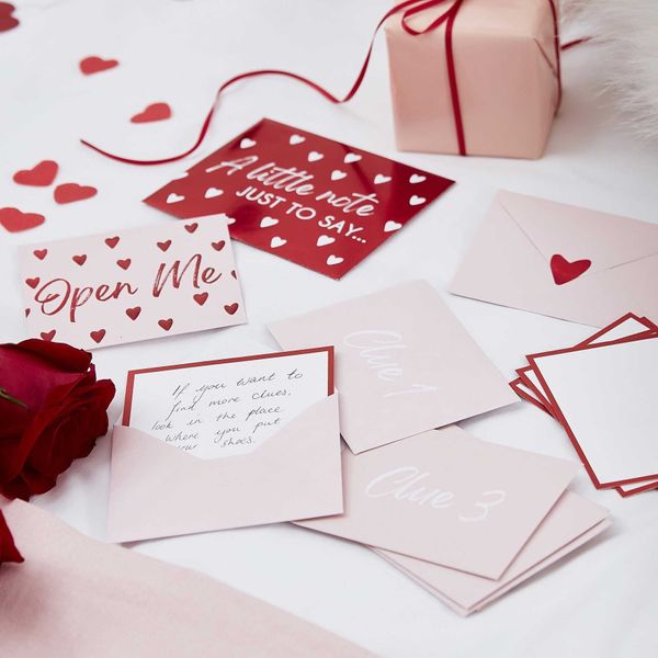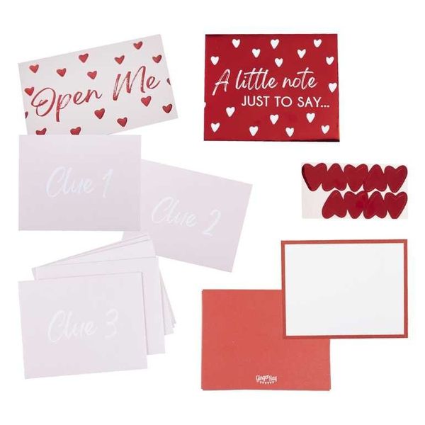 Have fun with your special someone this year with our fun Treasure Hunt Kit . This kit includes 10 envelopes ,clue envelopes and 1 with "just a note to say" envelope.