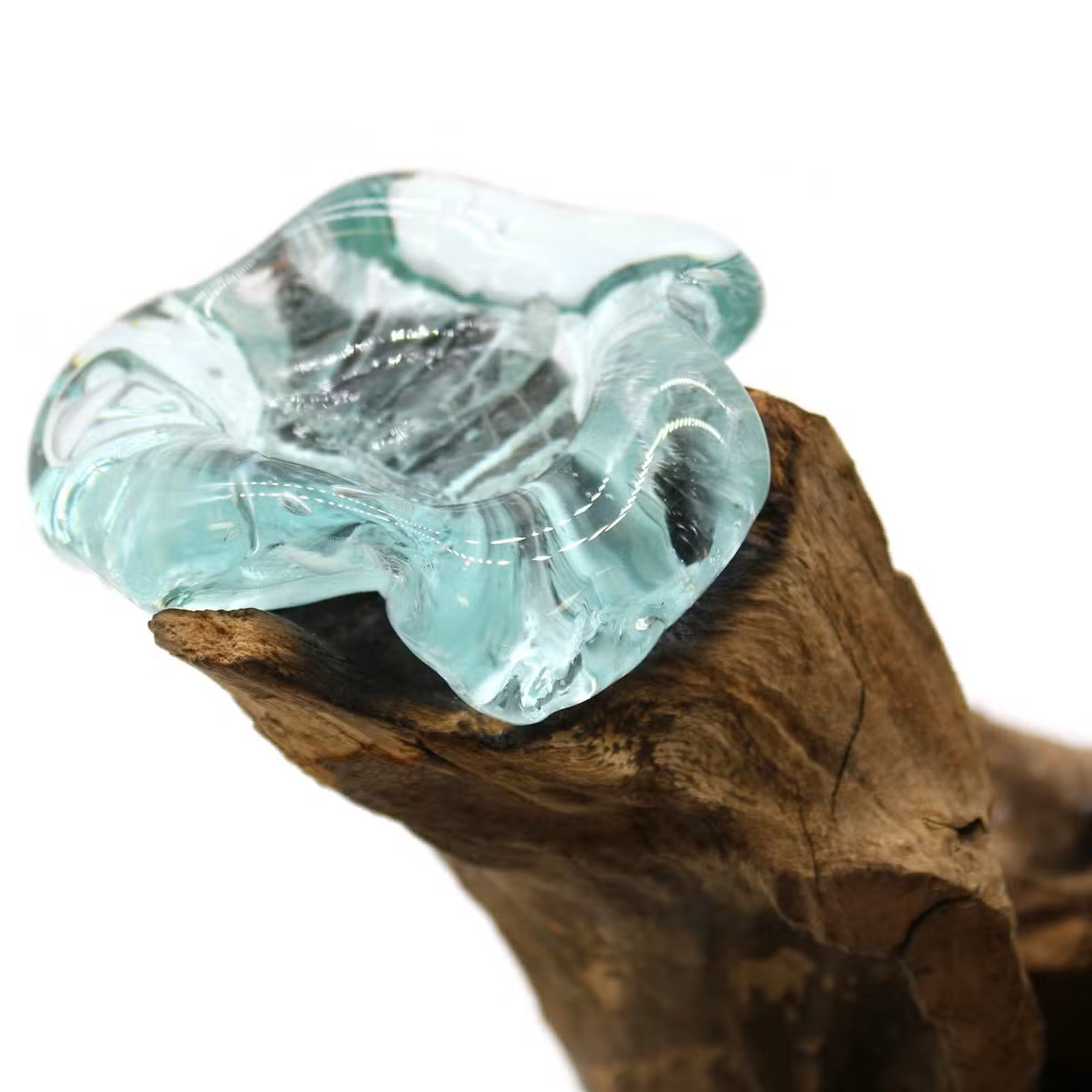 Material: Molten glass and reclaimed teak wood