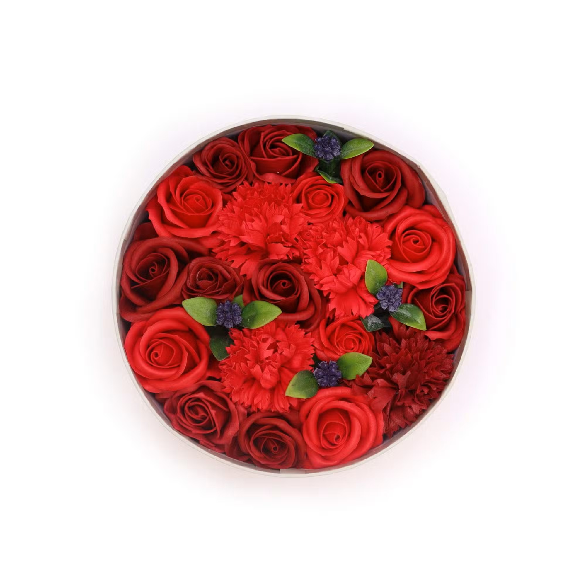The round box design adds a touch of sophistication, making it a standout centerpiece for any room. The vibrant red roses symbolize deep love and passion, making this bouquet a heartfelt gesture that speaks volumes. Whether you’re surprising a loved one or treating yourself, the Mercredi Bouquet is a versatile choice that brings joy and beauty into any space. Plus, the soap material means that these roses can be enjoyed for their aesthetic appeal and used as a luxurious addition to your bathing routine.