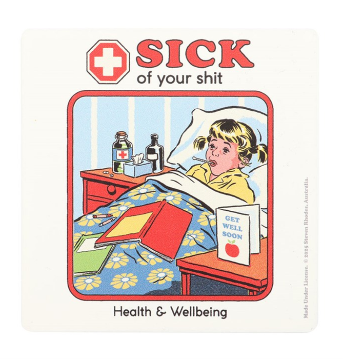 Introducing the Sick of Your Sh*t Coaster by Steven Rhodes, the ultimate accessory for those days when you’re just not in the mood to deal with anyone’s nonsense. This coaster is not just a practical item; it’s a statement piece that perfectly captures your cranky vibe. Crafted with high-quality materials, it offers a sturdy surface to protect your tables and countertops from unsightly rings and spills, all while adding a touch of humor to your home decor. Whether you’re enjoying a quiet cup of tea or hosting a gathering, this coaster will silently judge your guests and keep your surfaces pristine.