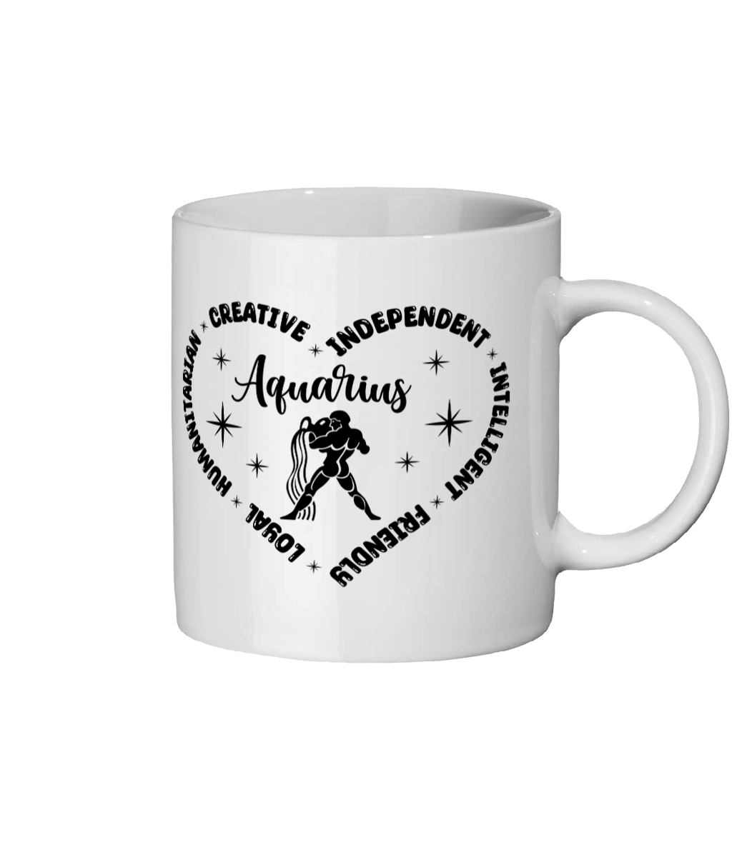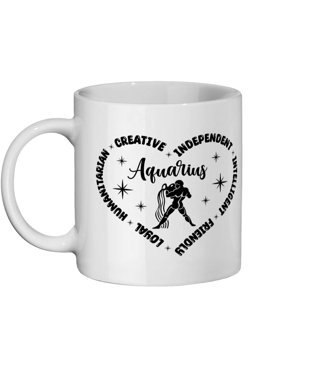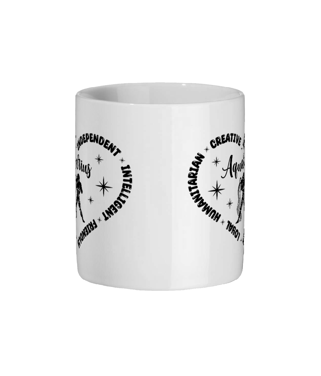 Embrace your celestial identity with our Aquarius Zodiac Sign Heart Mug, a perfect blend of style and functionality. Crafted from high-quality 11oz glossy ceramic, this mug features a stunning bright white finish that beautifully showcases the intricate Aquarius design. Whether you're sipping your morning coffee or enjoying a cozy evening tea, this mug is not just a drinkware item; it's a statement piece that reflects your unique personality and astrological traits.