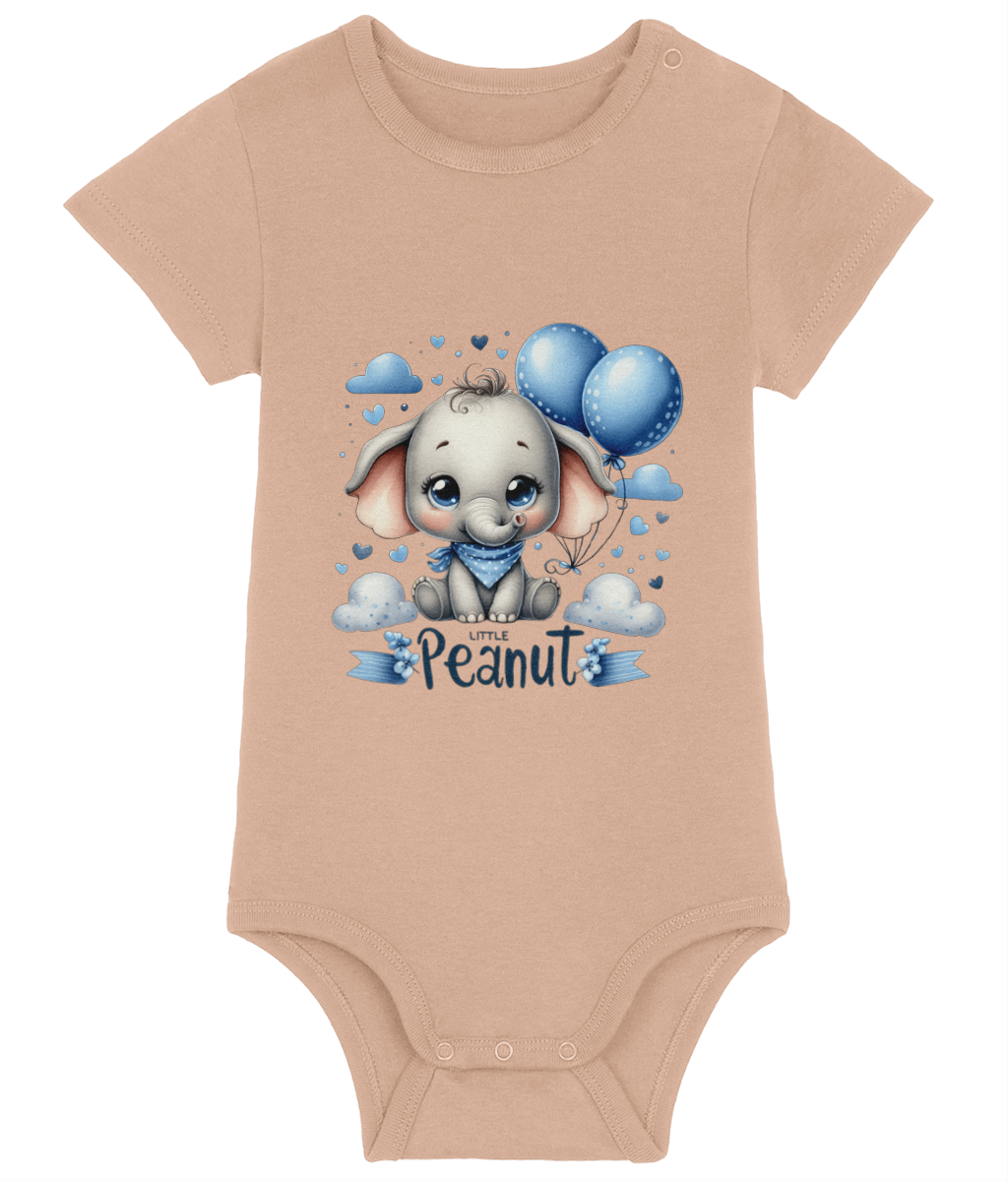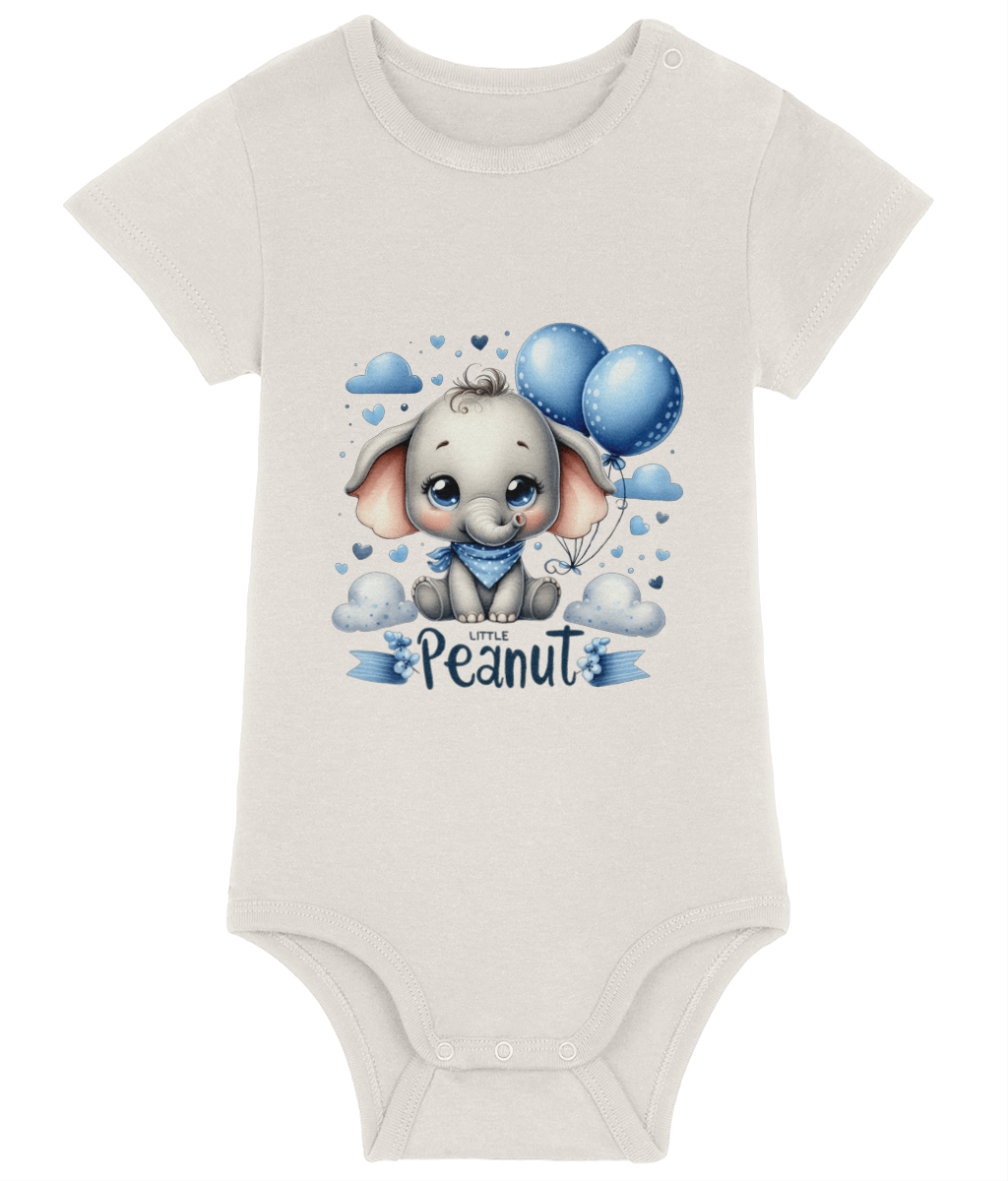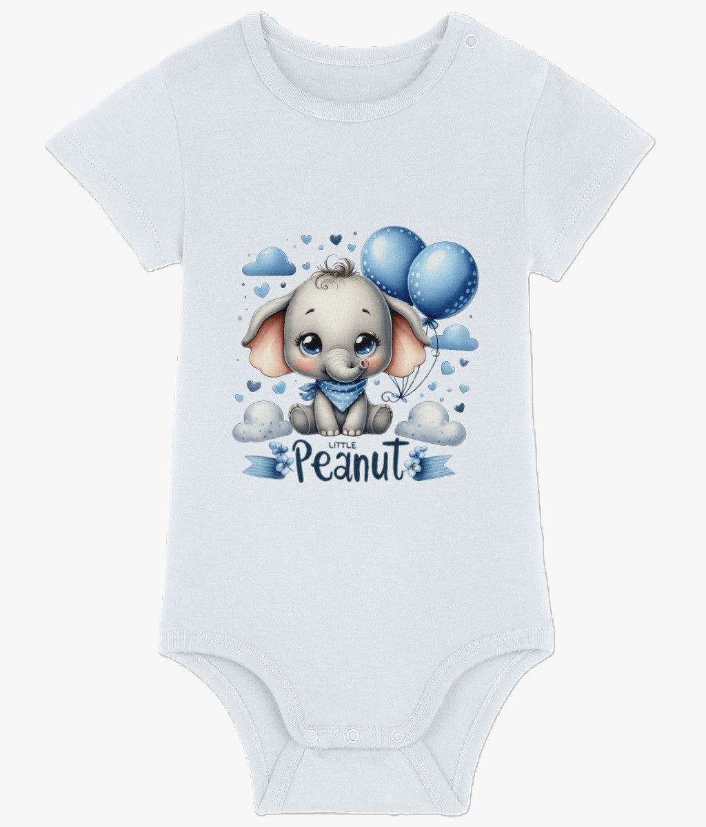 This adorable baby bodysuit features a charming design of an elephant joyfully holding colorful balloons, making it the perfect outfit for your little peanut. Crafted from soft, breathable fabric, this bodysuit ensures your baby stays comfortable all day long, whether they’re napping, playing, or exploring the world around them. The playful illustration adds a touch of whimsy to your baby's wardrobe, making it an instant favorite for both parents and little ones alike.