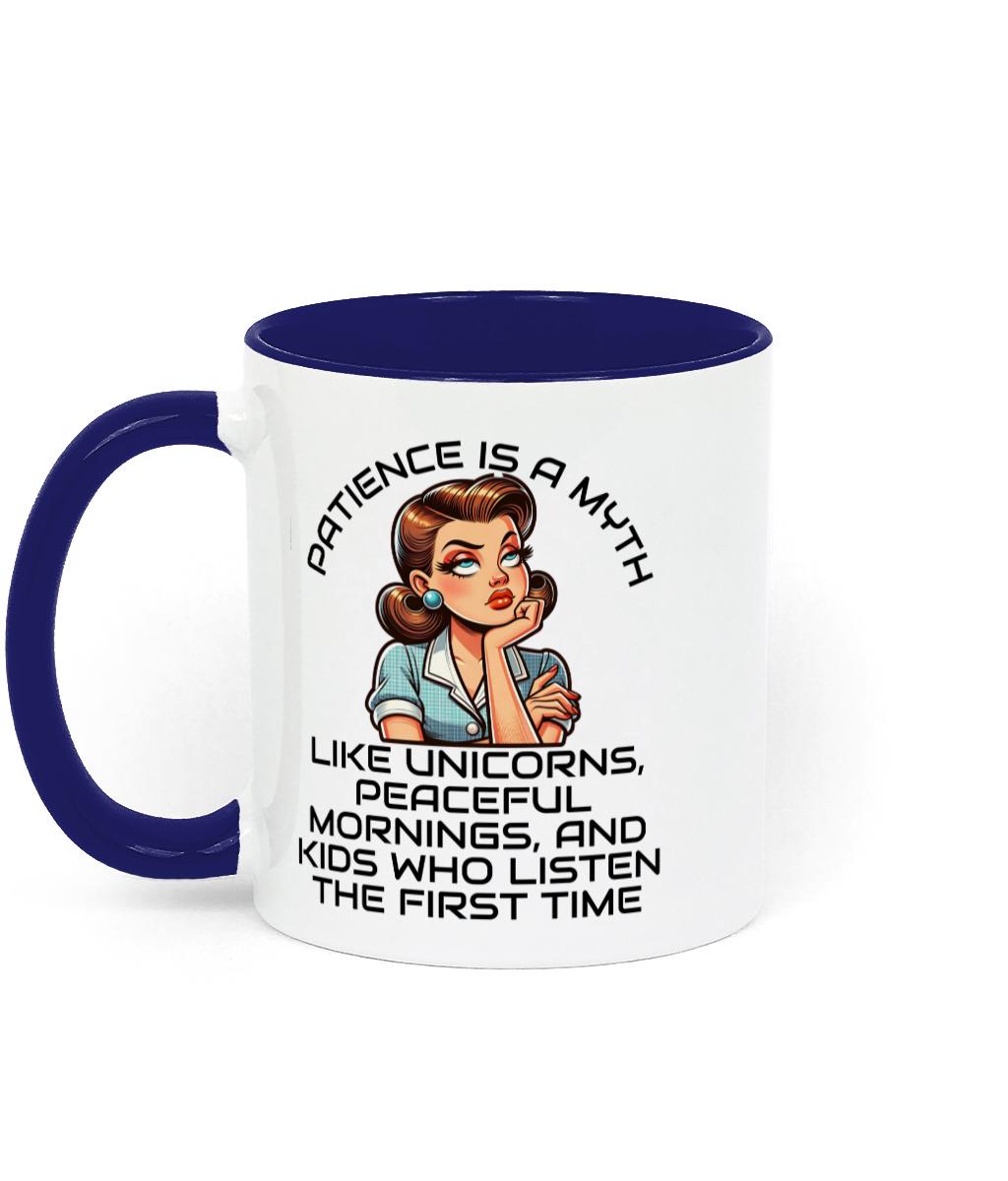 Two Toned Retro Sarcastic Ceramic Mothers Day, Birthday Mug Patience is a Myth