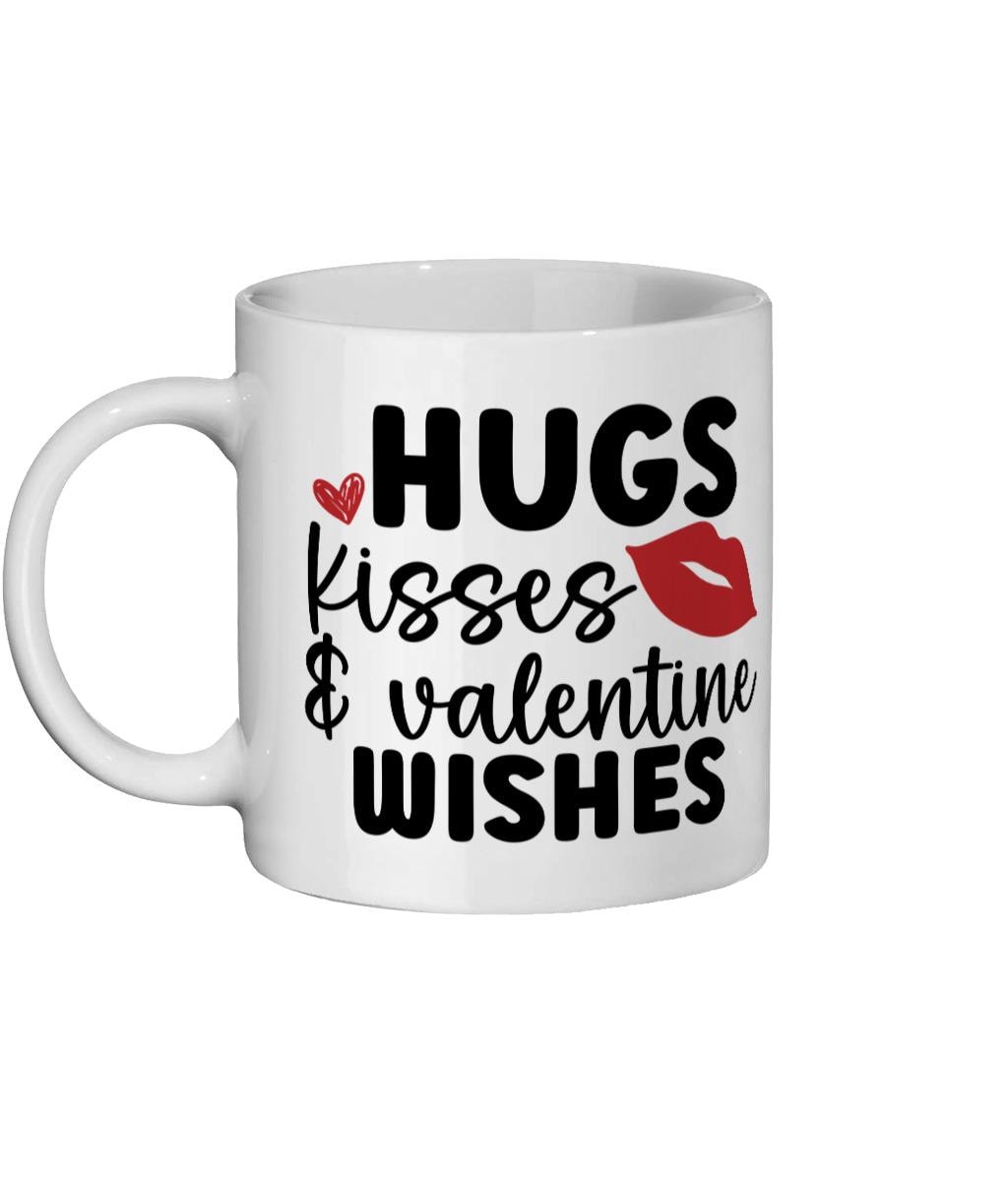 Celebrate love in every sip with our Valentine Hugs and Kisses Mug! This charming 11oz glossy ceramic mug features a bright white finish that perfectly showcases the sweet design, making it an ideal gift for that special someone or a delightful treat for yourself.