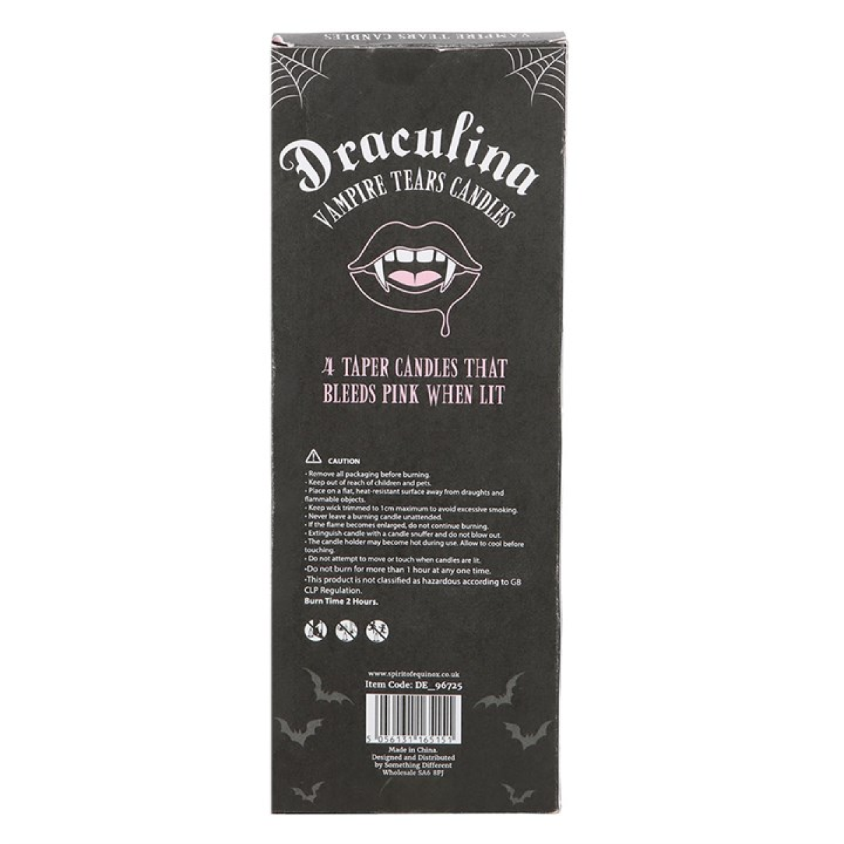 Light up your home with this set of 4 pink unscented taper candles, featuring dramatic pink dripping “vampire tears” detailing when in use. Perfect for gothic dinner parties or as a unique gift idea. Approximate 2 hour burn time per candle.