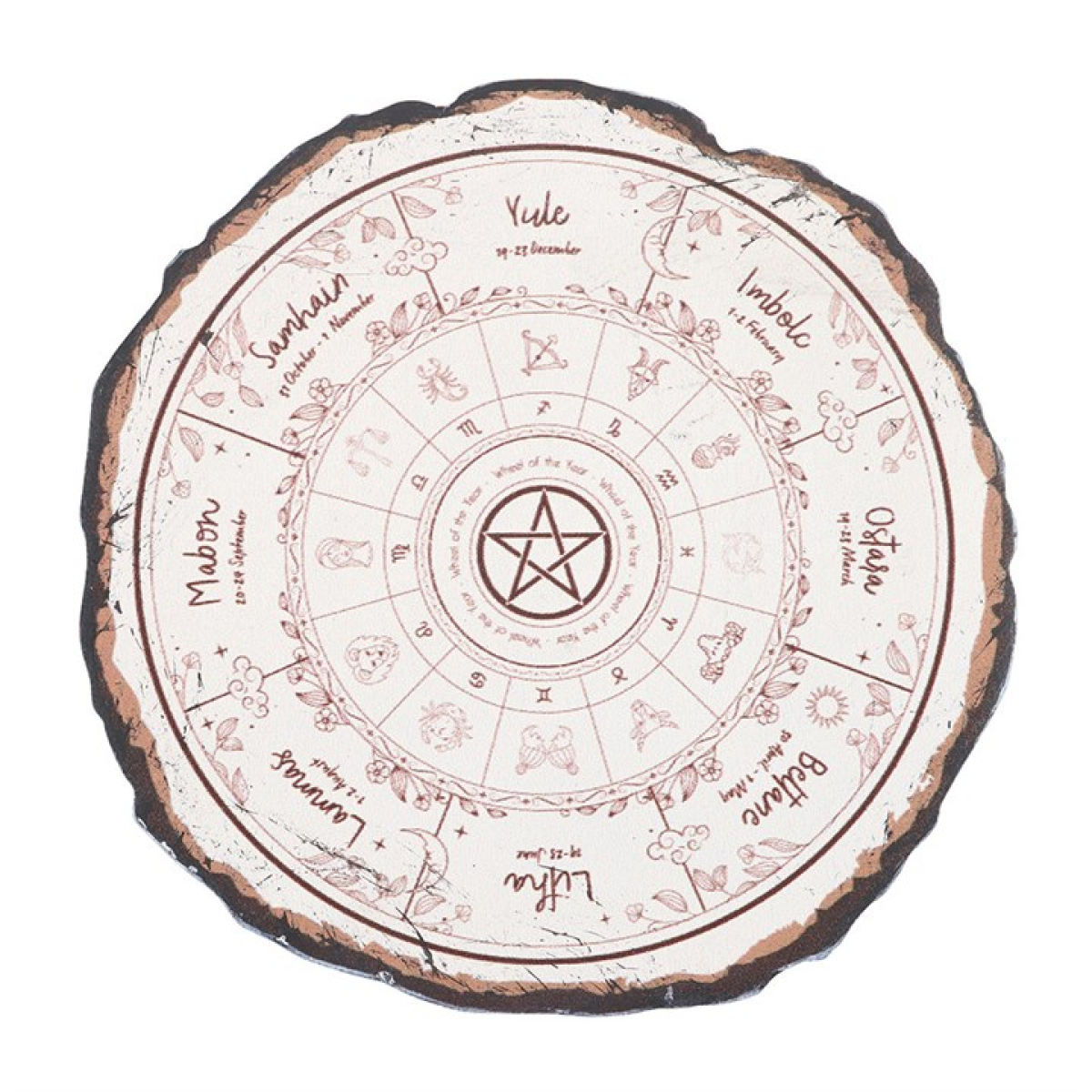 Protect surfaces with a touch of seasonal wisdom using this set of four coasters, each featuring a wood slice effect and a Wheel of the Year design. Perfect for spiritual homes and altars, these rustic-style coasters honour nature’s cycle while keeping your space tidy.